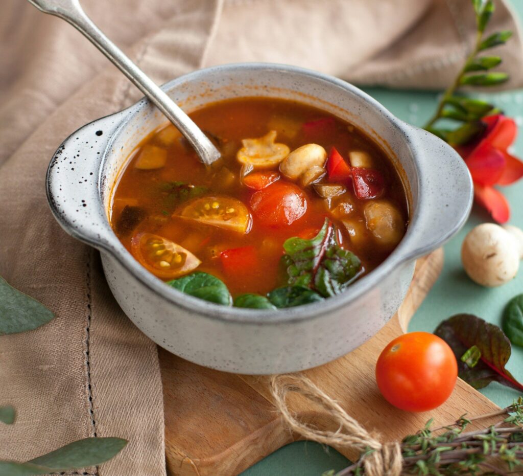 Sardyńczycy codziennie spożywają fasolę, czasami makarony, a przede wszystkim dużo warzyw sezonowych. Częścią ich diety od wieków jest warzywna zupa Minestrone. Wszystkie składniki tej fantastycznej zupy zawierają dużo błonnika, który kontroluje procesy zapalne i wzmacnia układ odpornościowy. Zupę Minestrone jedzą codziennie – i podobnie jak słodkie ziemniaki na Okinawie, dieta na Sardynii jest pełna złożonych, czyli dobrych, węglowodanów.