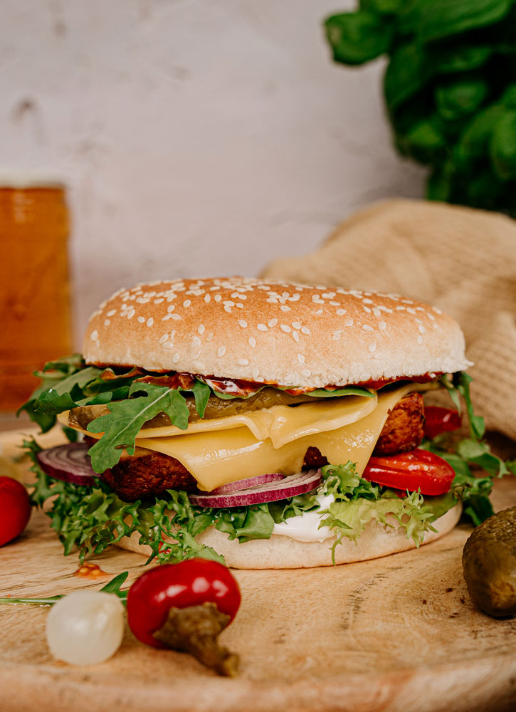 - Złóż bułkę i podawaj z sałatką, grillowanymi ziemniakami lub frytkami.